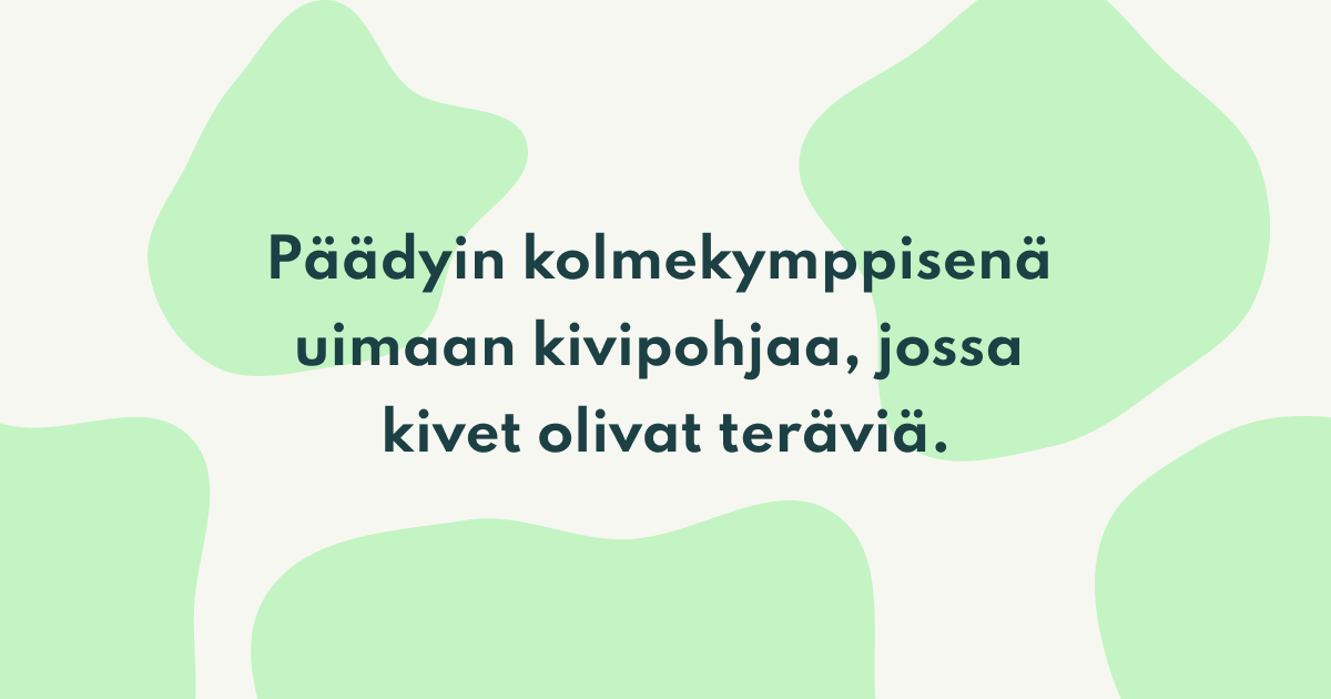 Päädyin kolmekymppisenä uimaan kivipohjaa, jossa kivet olivat teräviä.