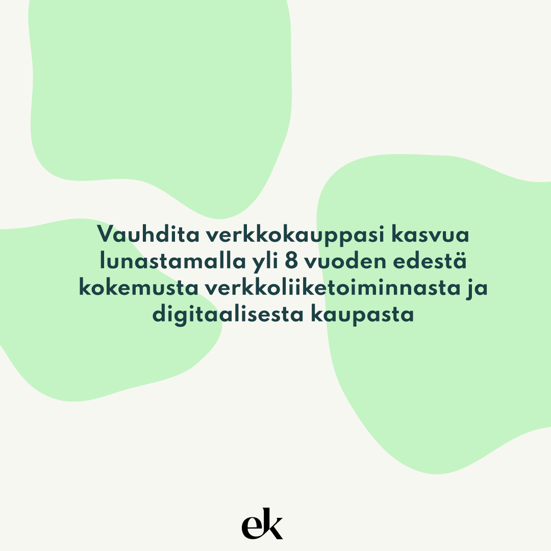 Haluatko vauhdittaa verkkokauppaasi lunastamalla yli 8 vuoden edestä kokemusta verkkoliiketoiminnasta ja digitaalisesta kaupasta?